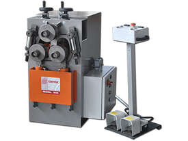 - Three driving rolls - Pyramid style design - Bending capacity pipe up to 4 angle up to 80x80 mm 3 x3 - Hydraulic adjustment of bending roll - Combination horizontal-vertical working position - Mechanical positive stop for consistent repostioning - Digital readout Section modulus cm 10 Diameter of shafts Upper Lower mm 50 Diameter of rolls mm 180 Power output kW 1,5 Rolling speed m min 4,4 Weight kg 530